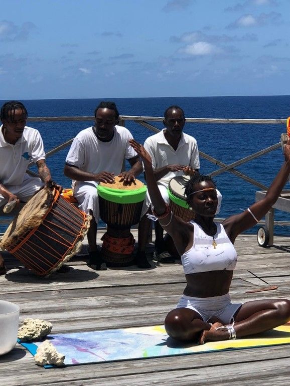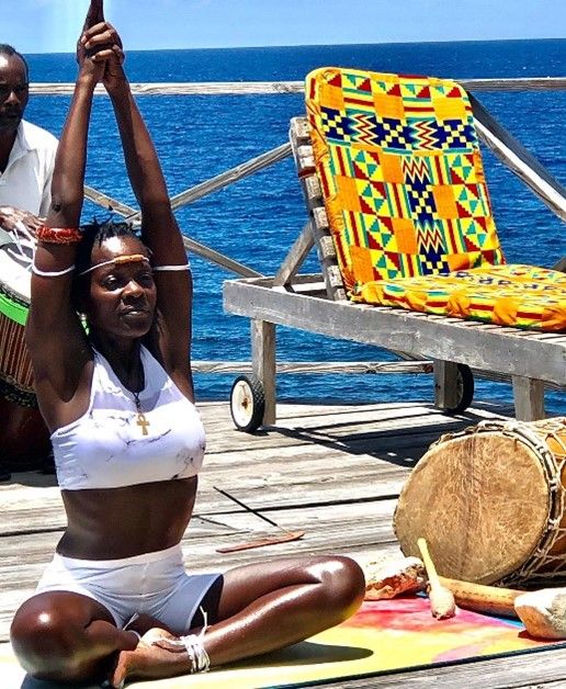 She naturally combined all principles that she has experienced from other practices, but primarily works within the principles of Kemetic Yoga which historically is the foundation principle of all yoga practises.